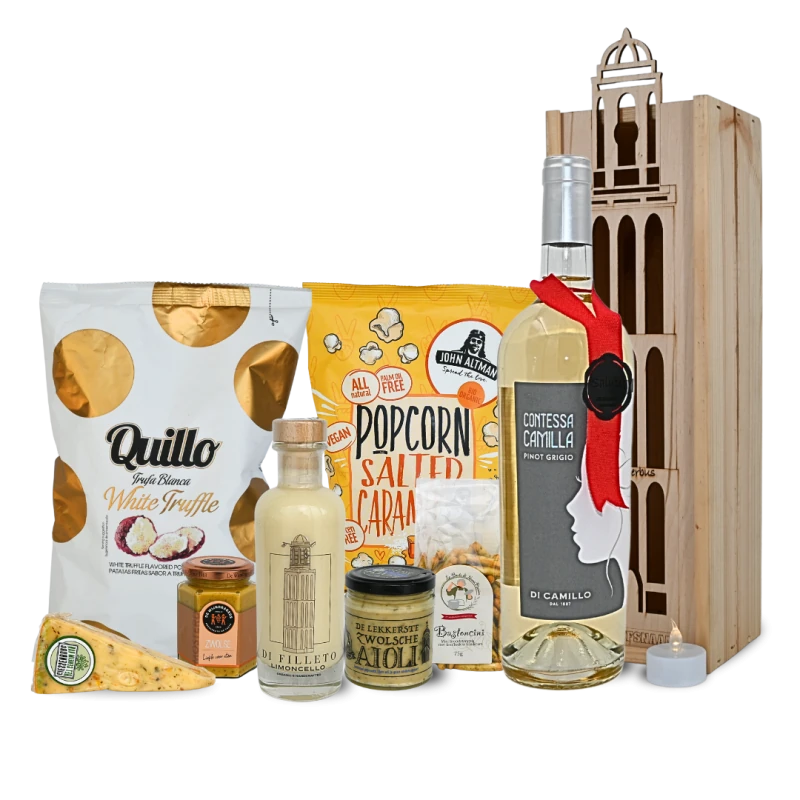 Kerstpakket ZWOLLE ITALIAANS met Peperbuskist met eigen logo en tekst