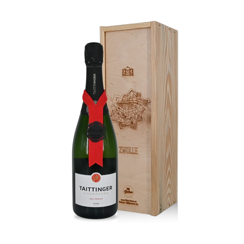 Champagne Taittinger in kist met Zwolle kunstgravure