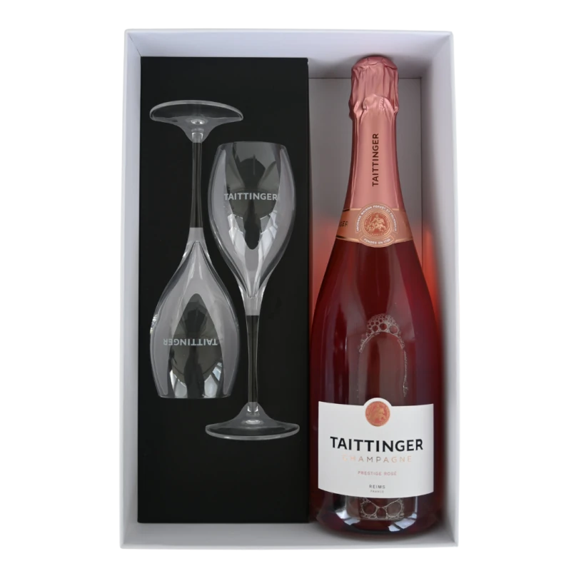 Champagne Taittinger Rosé Prestige box met twee champagneglazen