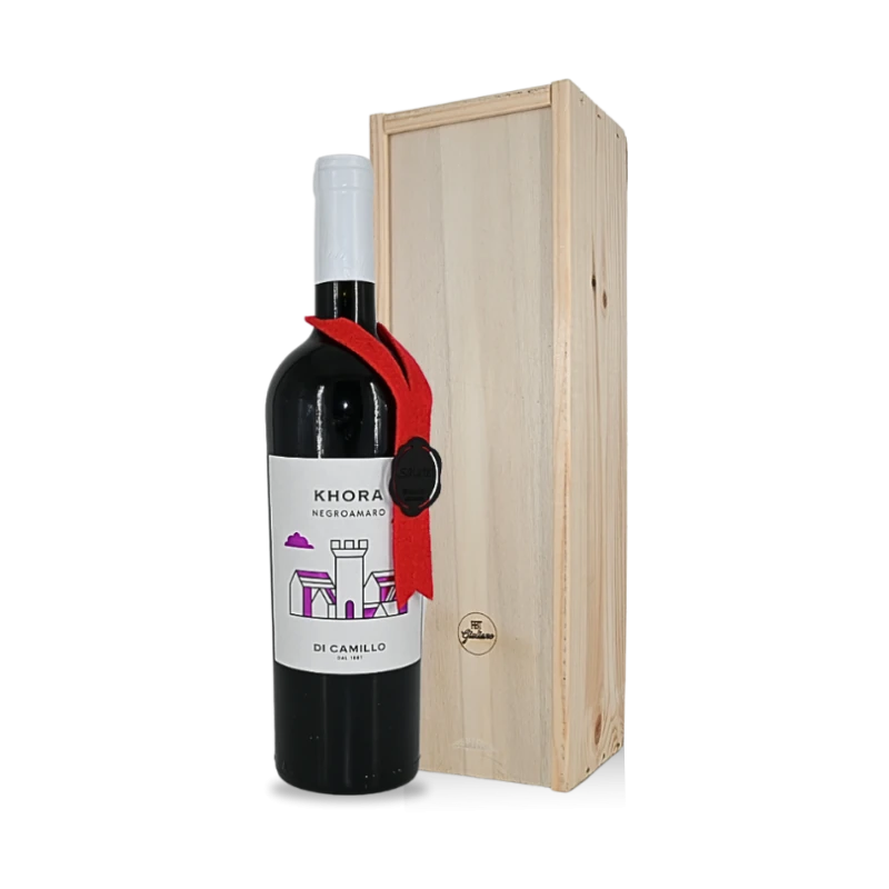 Negroamaro Khora rode wijn uit Puglia in houtenwijnkist